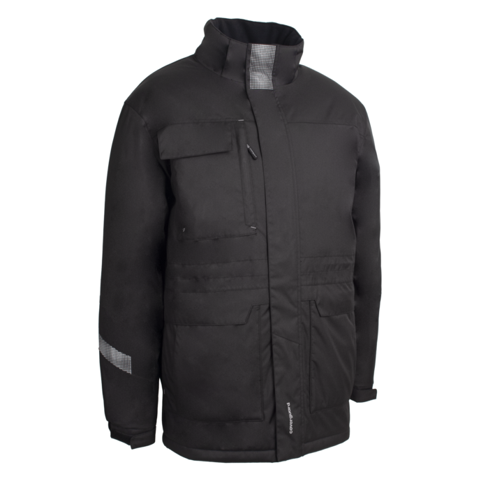 Αδιάβροχο παρκά από ανθεκτικό πολυεστέρα υψηλής ποιότητας. Με ειδικό σύστημα ραφών που αντανακλά και δεν απορροφά τη θερμότητα. Διαθέτει ρυθμιζόμενα μανίκια, ψηλό κολάρο στο λαιμό, αποσπώμενη κουκούλα και 8 τσέπες.