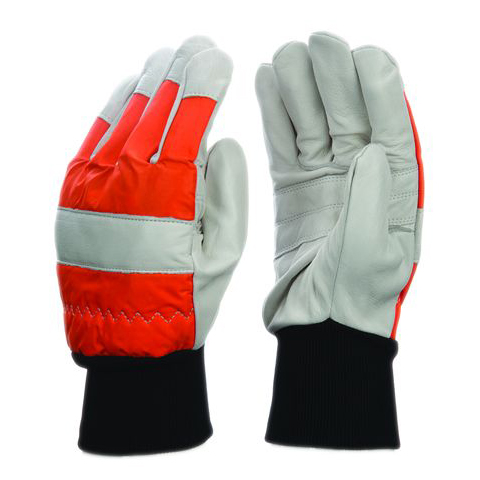 Γάντια προστασίας για χρήση αλυσοπρίονων από δέρμα μόσχου προσώπου στην ενισχυμένη παλάμη και ειδική φόδρα πολλαπλών στρώσεων και ειδικής τεχνολογίας για προστασία από κοπή. Επιπλέον προστασία σε νύχια και καρπό.