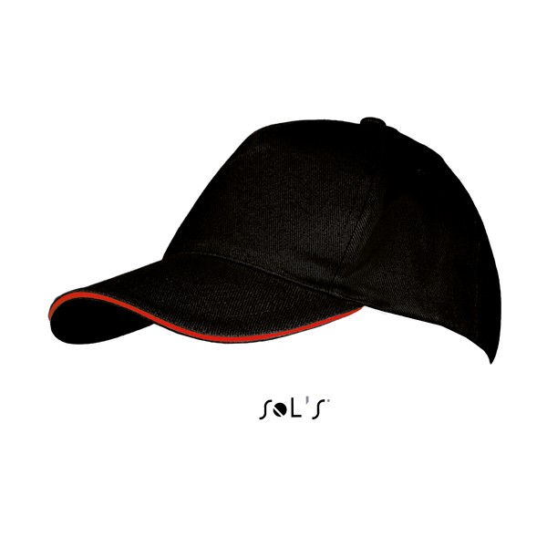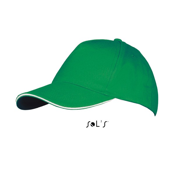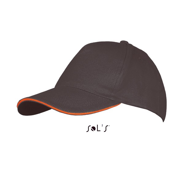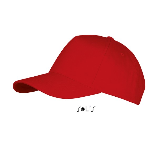 Πεντάφυλλο καπέλο από 100% Βαρύ βαμβάκι χνουδιασμένο, 260g/m² με προσχηματισμένο γείσο (κυρτό), τέσσερις κεντημένεs οπέs για εξαερισμό και ρυθμιζόμενο πίσω κλείσιμο με μεταλλική αγκράφα. Μεγάλη περιοχή εκτύπωσης, από βαρύ χνουδιασμένο βαμβάκι.
