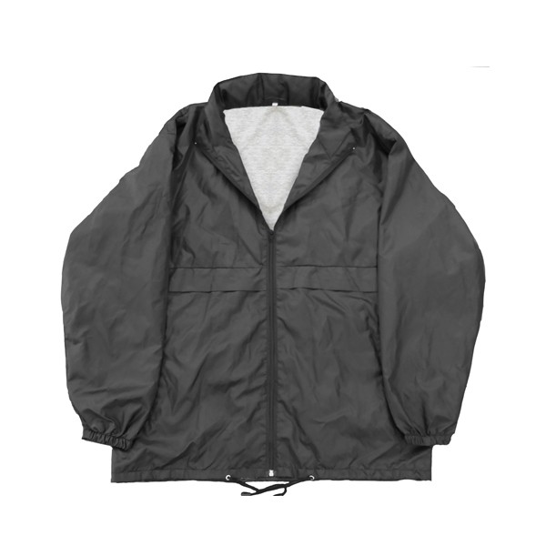 Unisex αντιανεμικό αδιάβροχο με επένδυση jersey.Κλείσιμο με φερμουάρ.Δύο εξωτερικές τσέπες.Ίσιο τελείωμα στο σώμα με κορδόνι για ρύθμιση, τελείωμα με λάστιχο στα μανίκια. Κουκούλα που διπλώνει μέσα στο γιακά με φερμουάρ.Ανοίγματα εξαερισμού.