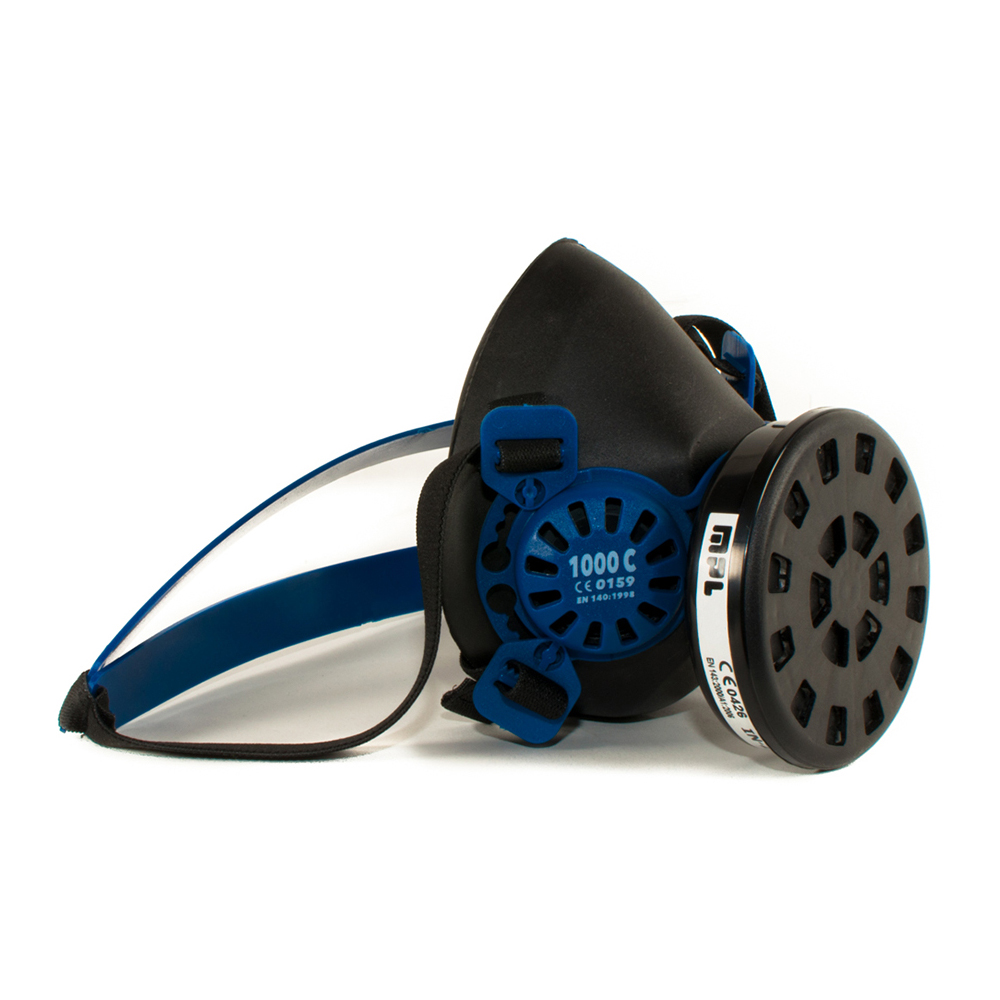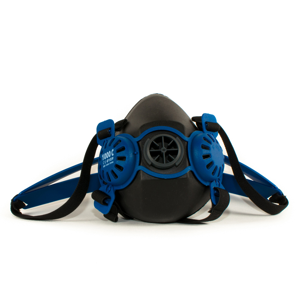 Μάσκα μισού προσώπου από γόμα ισπανικής κατασκευής,ενός φίλτρου, πολύ ελαφρία με ισομερή κατανομή βάρους, δύο βαλβίδες εκπνοής για ελάχιστη αντίσταση εκπνοής. Ρυθμιζόμενοι ελαστικοί ιμάντες πολύ ανθεκτικοί και εργονομικοί χαμηλής σχεδίασης με ευρύ πεδίο όρασης και δυνατότητα χρήσης γυαλιών ανοικτού ή κλειστού τύπου. Αντιιδρωτικό διάφραγμα ομιλίας.