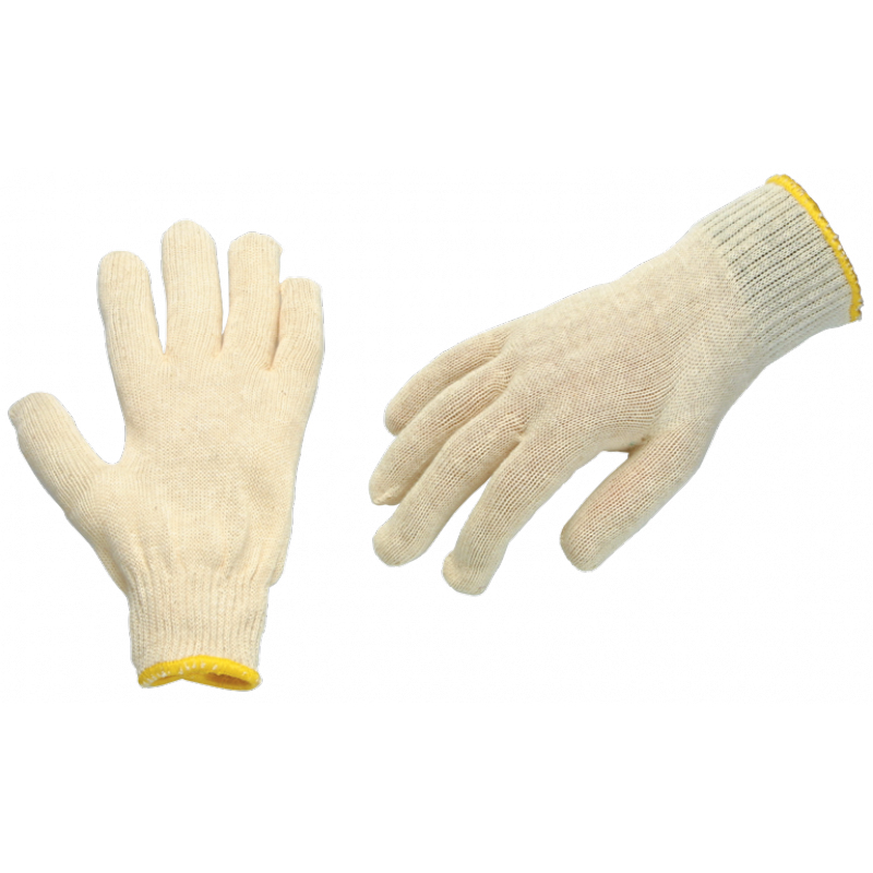 Εφαρμοστά γάντια πλεκτά φυσικού χρώματος από βαμβάκι και polyester και κόκκους PVC για καλύτερο grip, ανδρικό μέγεθος.