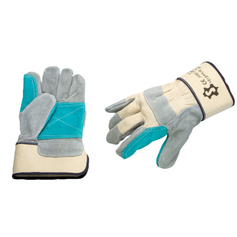 Γάντια με παλάμη από δέρμα μόσχου με πράσινη ενίσχυση στην παλάμη και στον αντίχειρα, φοδραρισμένο, μανσέτα και εξωτερικό μέρος από ύφασμα.
