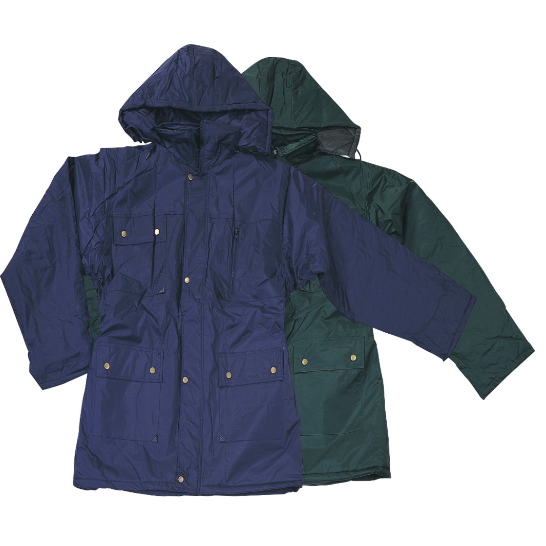 Parka ψύχους, χρώματος χακί, αδιάβροχο από Nylon – PVC, με κουκούλα και εσωτερική επένδυση.