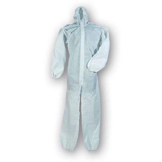 Ολόσωμη φόρμα εργασίας μίας χρήσεως από PLP 42g/mμε άνοιγμα με φερμουάρ μπροστά, ελαστικές μανσέτες, αστράγαλοι και κουκούλα .