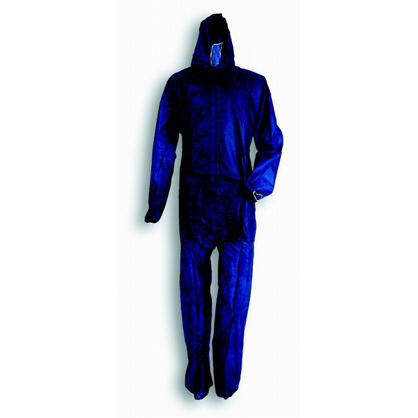 Ολόσωμη φόρμα εργασίας μίας χρήσεως από PLP 42g/mμε άνοιγμα με φερμουάρ μπροστά, ελαστικές μανσέτες, αστράγαλοι και κουκούλα .