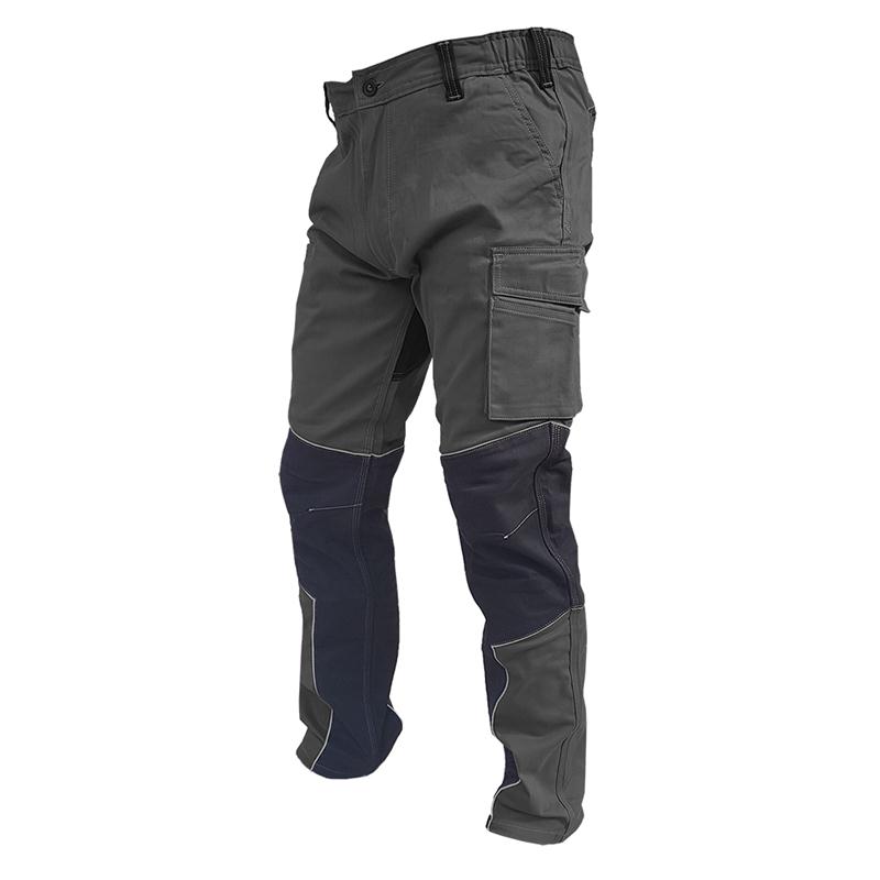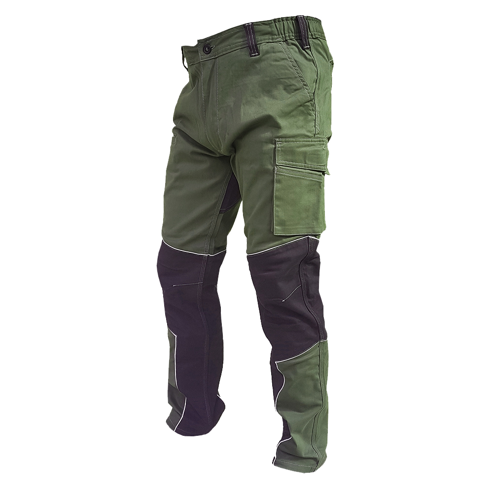 Παντελόνι εργασίας slim fit μοντέρνας αισθητικής από 98% βαμβάκι και 2% spandex για εξαιρετική άνεση και ελαστικότητα, 280γρ. Διαθέτει ενίσχυση στον καβάλο και στα γόνατα από 65/35% ανθεκτικό ύφασμα καμβά. 6 τσέπες συνολικά, δύο κανονικές τσέπες, δύο πίσω και δύο στους μηρούς. Με διακριτικά ανακλαστικά στοιχεία για καλύτερη νυχτερινή ορατότητα από τρίτους και ασφάλεια.