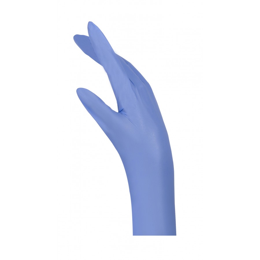 Γάντια νιτριλίου μιας χρήσεως μπλε, αμφιδέξια ,χωρίς πούδρα, latex free, με υφή στα δάκτυλα, AQL 1.5, πιστοποίηση για επαφή με τρόφιμα.