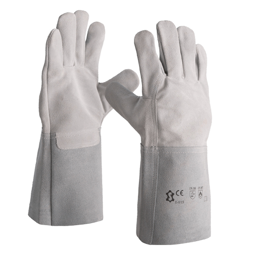 Γάντια ηλεκτροσυγγόλυσης από υψηλής ποιότητας δέρμα (splitleather), με προστασία από παλμικές δονίσεις, μήκους 15 εκατοστών, ιδανικά για ηλεκτροσυγκόληση τύπου TIG.