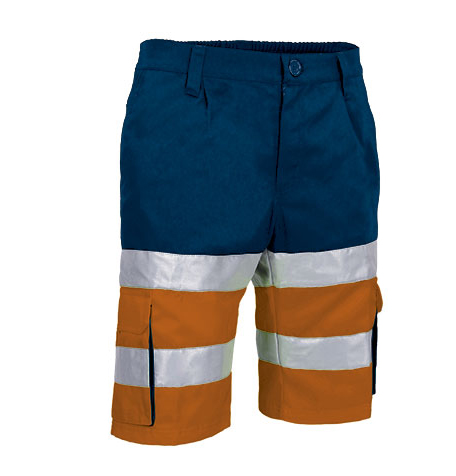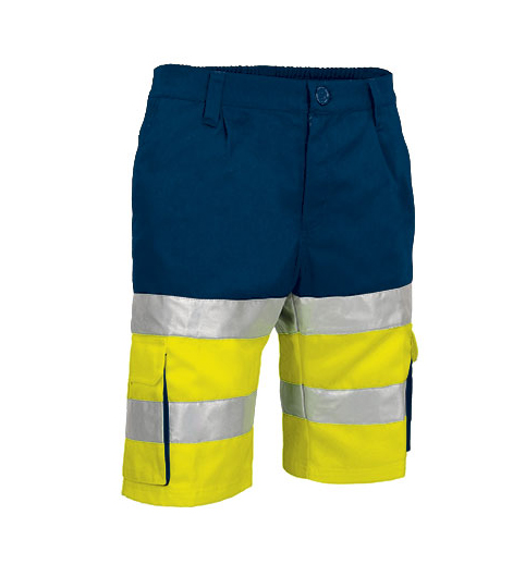 Σορτάκι υψηλής ορατότητας cargo απο 65% πολυεστέρα και 35% βαμβάκι. Κατασκευασμένο από ανθεκτικό και μακράς διαρκείας ύφασμα, περιλαμβάνει δύο ραμμένες ανακλαστικές ταινίες στις μανσέτες των ποδιών για μεγαλύτερη ασφάλεια. Διαθέτει κλείσιμο με καπακι κουμπιά και φερμουάρ, ελαστική ζώνη στη πλάτη, θηλίες στη ζώνη και πολλαπλες τσέπες.